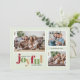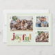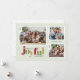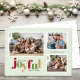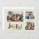 Det här fotojulkortet Julhälsningar ord "glatt" i en lekfull text och festligt färg. Utformningen ger utrymme för tre familjefotografier på en mycket ljust grönt bakgrund.