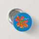 En glatt knappnål som dekoreras med en daisy av ljusstark orange med ett besökande bi som dras med bläck och som målas med vattenfärg på en royalets blå bakgrund. Du kan ändra texten och bakgrunden i färg så att de passar dina behov.