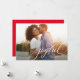 Och elegantens skript "glatt" omges av glatta stjärnor på det här helgdag för ett foto-vågrät. Anpassa den med ditt namn och/eller hälsning och din bild. Perfekt för att skicka jullök till vänner och familj. Baksidan är en röd prickad med de samordnande gniststjärnorna.