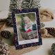 semesterhälsningar med de här fotojulkorten som innehåller ditt favoritfotoset på en bakgrund av blommor och botaniska helgdag i fessionsrött och grönt på midnattblått. Med ett redigerbart meddelandeområde kan du anpassa din Julhälsningar. Lägg till din familj namn eller namn under. Kort återgår till fast grönt.