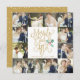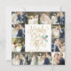 Sprid kärleken och visa upp era bröllopsbilder under högsäsongen med det här snygga och moderna gratulationskortet Just Married Holiday Photo collage. Perfekt för det nygifta paret att använda som bröllopsinbjudan eller tackkort under högtiderna. Det här kortet sätter era vackra bröllopsbilder till användning genom att visa upp en unik och sömlös 12-bilders fotokollagegrid parat med festlig guldbokstavsstil som säger "Merrily Ever After" och vår handmålade akvarell-julgran. På baksidan kan du lägga till ditt eget anpassade meddelande, som framhävs av en lekfull ram med snö / snöflingor.