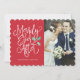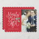 Sprid kärlek medan du visar upp dina bröllopsfoton under denna högtid med det snygga och moderna "Just Married Holiday Photo" -kortet. Perfekt för det nygifta paret att använda som ett julkort, bröllopsannons eller tackkort runt högtiden. Detta kort framhäver ditt bröllopsfoto genom att para det med festlig och lekfull skrifttypografi som säger "Merrily Ever After" och accentueras av vår handmålade akvarelljärnek. På baksidan kan du lägga till ditt eget anpassade meddelande och 3 ytterligare foton.