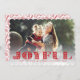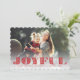 Det festliga och gladlynt helgdagfotokortet presenterar din favorit- vågrät eller landskap orienterat avbildar med "glatt" som överdras i vibrerande röd bokstäver för papelpicadostil. Personifiera med din beställnings- julhälsning beneath. Kort vänder om till ett wintry botaniskt mönster i rött på vit. Vi föreslår kammusslan formade pappra stilen för att komplettera utklipplooken av "den glatt" bokstäver.