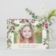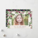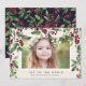 Överför helgdaghälsningar till vänner och familjen i chic stil med våra eleganta fotokort. Behagfulla sprigs av målad vattenfärglövverk och - röda bär inramar ditt foto, med din beställnings- hälsning (som visas med "glädje till världen") och ditt efternamn längs grunden i cranberry och mörk - grånar djupt bokstäver. Kort vänder om för att avslöja ett matcha botaniskt mönster för vinter.