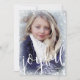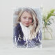 Julkort inspirerat av vintern under himlen, med en frostiserad ram av pulverfoten snö och snöflingor kring ditt val. Över den nedre halvan skrivs glatt i ett stort skript. Baksidan har diagonal rand i faux guld-folie.