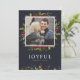 Prisvärda helgdag för utskrift av anpassningsbar med enkla mallar för anpassning. Den här festliga designen har en vattenfärgsfärgad elegant gräns av grönt löv och blommor i rött, grönt och burgundi färg på en marin blå bakgrund. Anpassa den med foton och anpassningsbar. På motsatt sida finns en anpassningsbar som Julhälsningar eller användor utrymmet för att lägga till ytterligare foton. Använda designen verktyg om du vill välja valfri färg för bakgrund, redigera texten typsnitt och färg, ladda upp fler foton och skapa en typ av helgdag-fotokortsdesign.