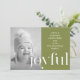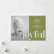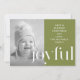 Modern julkort har fet glatt text på en sjudande grönt med ett enkelt vitt typografiskt helgdag och foto.