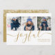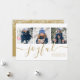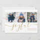 Ett fotokort med elegant som innehåller dina speciella favoritfoton på 3 och din familjs namn och datum som är angivet i klassisk modern helgdag över ett meddelande om glädje i chicen. Designad av Thisisnotme©