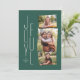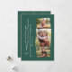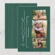 Ett modernt, staplat grått- och vitt glatt typbehandlingssäte placeras bredvid ett kollage av tre foton på gröntens bakgrund. Den randade samordnande bakaren är en matchande färg. Detta kort i helgdag är perfekten för att skicka julhälsningar i lycklig.