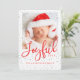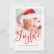 Fira helgdagarna med ett Glatt fotokort för snyggt. Julfotokortet innehåller faux-silver-folie som gränsar till kortet, orden "Glatt" i ett skript med röd snyggt och en platshållare för ditt foto, innevarande år och namn i familjen. Baksidan har en röd bakgrund med en lätt snövit struktur.