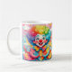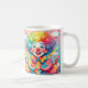 En levande tecknad med ett eländigt leende omgiven av en vit värld med färgstarka former, stjärnor och moln. Kryddhåret och kläderna är ett kalejdoskop av pastel färg, som matchar den lekande atmosfären. Bilden utesluter lycka och fri glädje, perfekt för att ha lekt till någons ansikte.