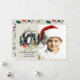 Julfotoport med en vacker helgdag-blommigt, löv, päron och helgdag dekorativa andekrans med texten JOY! Det här fotokortet är enkelt att anpassa med ditt foto, din familj namn, första namn och det aktuella året. Detta vackra Glatta jullkort är perfekt att skicka till vänner och familj. Baksidan är blek grått med samma dekorativa gröna sprit, blommor, päron, bär och löv som framsidan, med ett område att lägga till det aktuella årsdatumet!