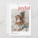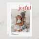 Fira säsongen med enkelhet och stil med hjälp av detta Glatta julkort för familjen Minimalistic Photo Red. Det här kortet har en fetstilt röd bakgrund med ren, modern typografi och erbjuder en elegant som ändå är glatt för att visa familjens foto. Den minimalistiska utformningen understryker den festliga andan utan att övervältra öga, skapar den perfekt för alla som kärlek ett elegant och modernt helgdag ser ut. Anpassa med foto från din favoritfamilj och ett uppriktigt budskap för att sprida värme och glädje denna jul.