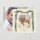 På det här helgdag i eleganten finns ett fyrkantigt kort med vattenfärgen gräs gren ram (gräns) i guld, rosett band, hullbär och botaniskt grönt, tillsammans med ett extra foto på baksidan. Skicka julhälsning till familj och vänner.