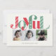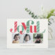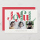 De här platta helgdagskorten på 7 x 5 tum har tre (3) av dina favoritfoton, namn och år. Det icke-redigerbara hälsning är "Glatt" i ett stort dekorativt brev av rött och grönt.