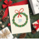 årstidens anda med ett klassiskt julkort med en frisk krans med bun och bausig, med "Joy" i hjärtat. Ett varmt, tidlöst sätt att fira jul och skicka önskemål till familj och vänner.
