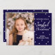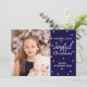 Skicka dina semesterhälsningar i år med det här fotokortet i eleganten som innehåller ord "Glatt jul" i modern typografi. Min design omfattar fallande polka dots av magiskt snö över en marin blå bakgrund för att visa ditt favoritfoto på framsidan. Kortets baksida har plats för ytterligare tre av dina favoritfoton. Gör det till en egen dator med de medföljande familjemallarna namn, fotobild och årslymallar. Du kan också ändra bakgrunden till färg så att den matchar dina foton.