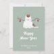 Omfamna säsongens magi med vårt anpassningsbara julkort med en charmig vinterlandskap, komplett med försiktigt fallande snöflingor. I denna fantasifulla scen står en snökat, formgiven efter en söt katt, stolt som en inkarnation av vintervunder. Intryckt mot snökattens sida sover en mus vid namn Mr. Mouse, medan Fru Ugglan sitter på snökattens topp och håller vakt. Kortets meddelande, "Happy Meow Year", fångar semesterns glädje, och du kan anpassa både texten och illustrationen för att skapa en verkligt unik och hjärtlig hälsning till dina nära och kära.
