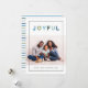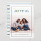Denna moderna och minimala helgdag-fotokortsdesign har ett enkelt foto ram med "GLATT" i modern sans serif-text som är formaterad i coola blue och grönt färg. Anpassa med ditt favoritfoto (5 x 7-förhållande), din familjemedlem namn och året. Det färgstarka vågrät rand, som samordnar mönster, går bakåt på kortet. Färg omfattar: koboltblått, oliver, stålblått, jägerblått grått, akvablått, indigo och accenter av mörk grått.