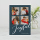 Glatt, modernt, minimalistiskt, blått Helgdag 4-fotokort. Skicka semesterhälsningar i anpassade och personlig till vänner, kolleger och familj i enkla, chic, elegant och moderna fotodesignkort, naturliga minimalistiska stil-kort! Under kalligrafin visas anpassningsbar hälsning-meddelandet i modern typografi.