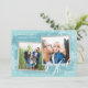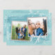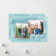 Sprid glädje och lycka i år med ett kort som poppar! Det har ett typiskt modernt kalligrafiskt skript som säger "glatt" på en texturerad blå bakgrund och accentuerad med vitt snöflingor och snöfall. Anpassa dina foton, din familj namn och enskilda namn. På baksidan finns ett mönster med vit snöflingor och stjärnor som matchar framsidan. faux Silver foil ramar och högdagrar dina foton