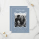 Spara vårt datum. Detta glada par foto spara datum-kort i modernt, fantasifullt dammigt blått tema, är perfekt för er bröllopsfirande-annonsering på er speciella dag. Denna spara datum-inbjudan har ett foto, och ni kan enkelt ändra detaljerna för er bröllopsannonsering. Detta kort finns även i digital nedladdningsbar version.