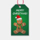 Skriv in ditt eget helgdag önskemål för att anpassa den här söta märkrn med en leende pepparkaksgubbe med en stor röd julhatt!