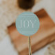 Våra helgdag-klistermärken har "JOY" i ett vitt handskrivet stil-blocksbrev på isigens mynta grönt, accentuerat med tunna, krusade vita band överst och grund. Designad för att matcha vår Glatta Symmetry-kortsamling.