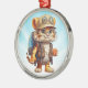 Glatt Tiger Unge med ryggsäck och kaffe Julgransprydnad Metall