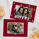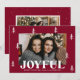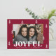 helgdag gläds åt att det här festliga julkortet visar vågräts foto som är inramat av vitt handritat gräs träd på en rikens burgundbakgrund. "Glatt" visas i fet vit text, med utrymme under personligen hälsning och namn. Baksidan innehåller utrymme för ytterligare ett foto, som ställs in mot en matchande burgundbakgrund med subtila vita punkter för att avsluta en sammanhängande elegant.