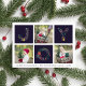 julhälsningar med de här fotojulkorten med tre av dina favoritfoton i en vågrät-rutnätslayout, som växlar med "JOY" i festlig typografi som bildas med julbotanik och helgdag. Lägg till anpassningsbarna hälsning, familjen namn och året längs grund. Kort som går tillbaka till ett motsvarande helgdag botaniskt mönster på rik midnattblått.