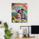 Den här hjärtslitande väggkonsten fångar en glatt babydusch med en glad gravid kvinna och hennes make som står vid en vackert dekorerad bord fylld med pastellliknande färgader och gåvor. De är omgivna av mjuka moln, ömtåliga blommor och milda stjärnor under en vibrerande regnbåge och solskensdeka. Mor som ska leka och hålla en liten nalle utstrålar lycka som hon står nära sitt stöd till make. Vattenfärgseffekten och mjuka pastellhuvar skapar en varm atmosfär som bjuder in en nyck och skapar den som ett idealiskt biet för förskolsdecor eller en speciell gåva som firar föräldraskap.