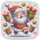 En glad tomten, som är donerad i sitt ikoniska röda kostym, dansar glädjande medan han håller i ljusomslagna presenter. Att omge honom är färgstarka prydnadsämnen och festive snöflingor, som fångar julmagin och upphetsningen under julhelgen.