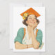En glad ung kvinna strålar med pride på den här illustrationen vintage-stil studenten, kompletterad med en orange som är försedd med gula blommor, och frammanar en nostalgisk och optimistisk anda.