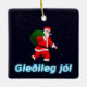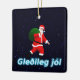 Tror du i Santa? En avbilda av stega jultomten som bär en grönt, hänger lös av presenter; lagt över på en starry bakgrund. Visas läs- "Gleðileg för isländsk text jól" (god jul) i glödande blått och vit.