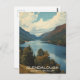 Ett vykort från Glendalough i Wicklow, Irland, med en lugn sjö, gamla klosterruiner och skogklädda kullar i bakgrunden.