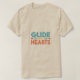 T-shirt-konstruktionen innehåller frasen "Glide in Hearts" i en kaskad av vibrerande färg. Varje ord flödar på ett smidigt sätt över skjortan, med olika brev som skryter med unika och öga-fångstknutpunkter. Detta skapar ett dynamiskt och upplyftande utseende, perfekt för att sprida ett meddelande om anslutning och charm.