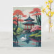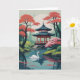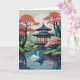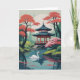 Ett svan-glidning framför asiatisk pavilion omgiven av blommande träd