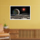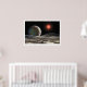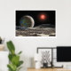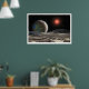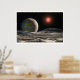 Gliese 581 c, som visas ur ett möjligt måne perspektiv, anses vara en bergig värld ungefär 1,5 gånger jordens radie. Temperaturen är osäker, men ändå ligger den nära stjärnans beboeliga zon, skapar förekomsten av oceaner och sjöar en möjlighet. Från en blandad medieillustration skapat för "The Search for a World like our Own: Imagine Earth 2.0" i Ssaxnex San Francisco den 15 maj 2008. Originalkonsten finns i en privat samling.