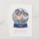 En enkel, men detaljerad, snö-glob med ett enda foto i mitten. Tillförlitlig med faux guld foil snö, raring schalloped kant och ren typografi.
