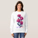 A stylized, glitch-art depiction of four pink roses with dark stems and leaves against a plain white background.