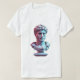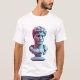 Dö in i en dimma med den här unika T-shirt-futuristiskan. Den har en glitsad romersk böjning förvrängd med vibrerande effekter, omgiven av mjuka pastellgeometriska former och klassisk retrotro