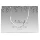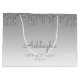 Den här 18:e födelsedagsfestens presentsäck i chic har en glatt silver faux glitter drop gräns och silver ombre-bakgrund. Anpassa det med hennes namn i handskript, tillsammans med hennes födelsedag och hennes dejt nedan.