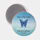 Glitter Blue Butterfly Quinceanera Spara datum Magnet