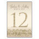 Den här moderna bord-kortsdesignen innehåller faux-accenter från guld glitter med champagnebakgrund. Perfekt för elegant och modernt bröllop. Bordsnumret går upp till 30.