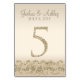 Den här moderna bord-kortsdesignen innehåller faux-accenter från guld glitter med champagnebakgrund. Perfekt för elegant och modernt bröllop. Bordsnumret går upp till 30.