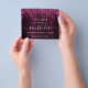 Observera att det här Spara datumet är pappert och mycket tunt. Kuvert ingår inte. Om du vill ha ett tjockare Spara datumkortet (samma design) kan du besöka vår butik. S Spara datum för en 21:a (eller någon annan ålder) födelsedagsfest. En djup burgundisk metallisk tittar bakgrund som dekoreras med faux glitter drops, färgdroppstift. Anpassa och lägg till datum och namn/ålder. Texten: Spara datumet skrivs med ett handskript i stil med dekortecken.