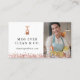 Moderna och professionella visitkort för fotorengöringstjänster med en minimalistisk design och layout. Anpassa med ditt företagsporträtt tillsammans med ditt företagsnamn och webbplats. En enkel logotyp för en falsk roséguld sprayflaska läggs till ovanpå företagsnamnet, tillsammans med en falsk roséguld glitterdesign. Baksidan har en QR-kod som du kan ersätta, tillsammans med namn, jobbtitel, kontaktinformation och socialt handtag. Alla illustrationer är handritade originalkonstverk av Moodthology Papery. Perfekt visitkort för städningsföretag, städtjänster etc.