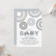 Fira baby med den här roligten och festliga inbjudan till baby sprinkle. Den här babyduschen i anpassadet har glamourouskuvötter som är fyllda i skuggor av pastellblåsor, grått och silver med glitter sprinkler. Färg är perfekt för "Det är en pojke"-duschar. Den moderna, söta babyduschen inbjudan är lätt att anpassa, lägg bara till din egen händelseinformation med hjälp av den mall som finns.