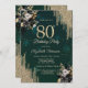 Glitter Drips Black Roses Green 80th Birthday Inbjudningar